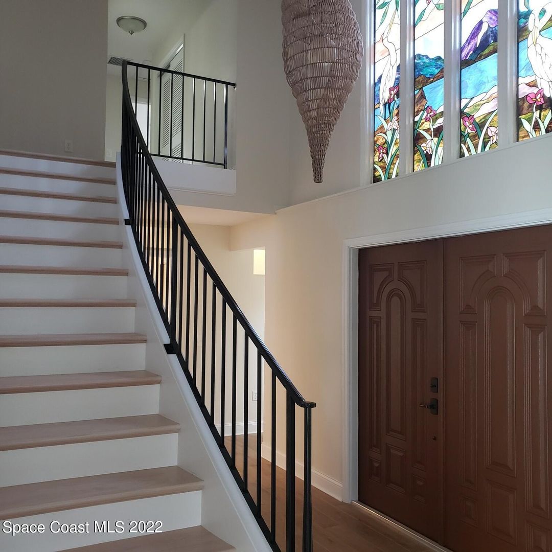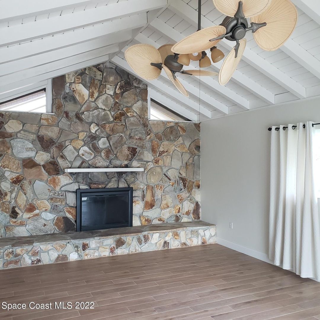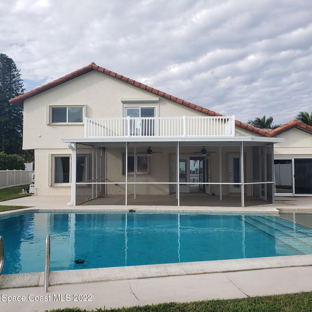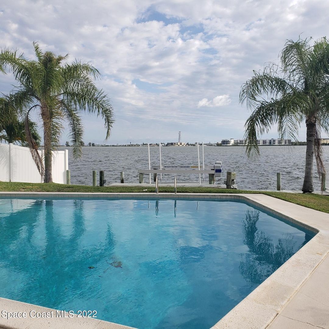 kayakers & boaters, and a screened lanai with audio system for enjoying the ocean and river breezes while in the shade. The formal living room/family room has a relaxing river view, natural wood beams and an in-ground propane tank supplies the welcoming gas fireplace in addition to the Rinnai tank less water heater. A private balcony off the second level primary suite provides a breathtaking view of the Banana River, Port Canaveral, Cocoa Beach & cruise ships in the Atlantic, affording the perfect spot for sunning and watching launches from Cape Canaveral & KSC. Ample parking is available on the circular drive for entertaining family and friends. Shopping and restaurants located less than a mile away with Cocoa Beach C.C. and downtown Cocoa Beach nightlife a mere five minutes away. A 45 minute drive delivers you to OIA, and 60 minutes to Orlando attractions. Owner furnishes pool maintenance and landscape service along with quarterly pest control inside & out. A small canine will be considered, no felines please. Enjoy tranquil coastal living and the luxe lifestyle you've been looking for at this custom, DIRECT RIVER FRONT home!