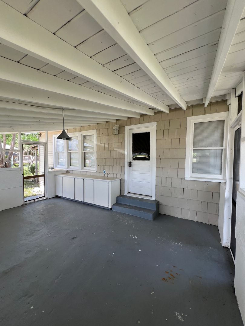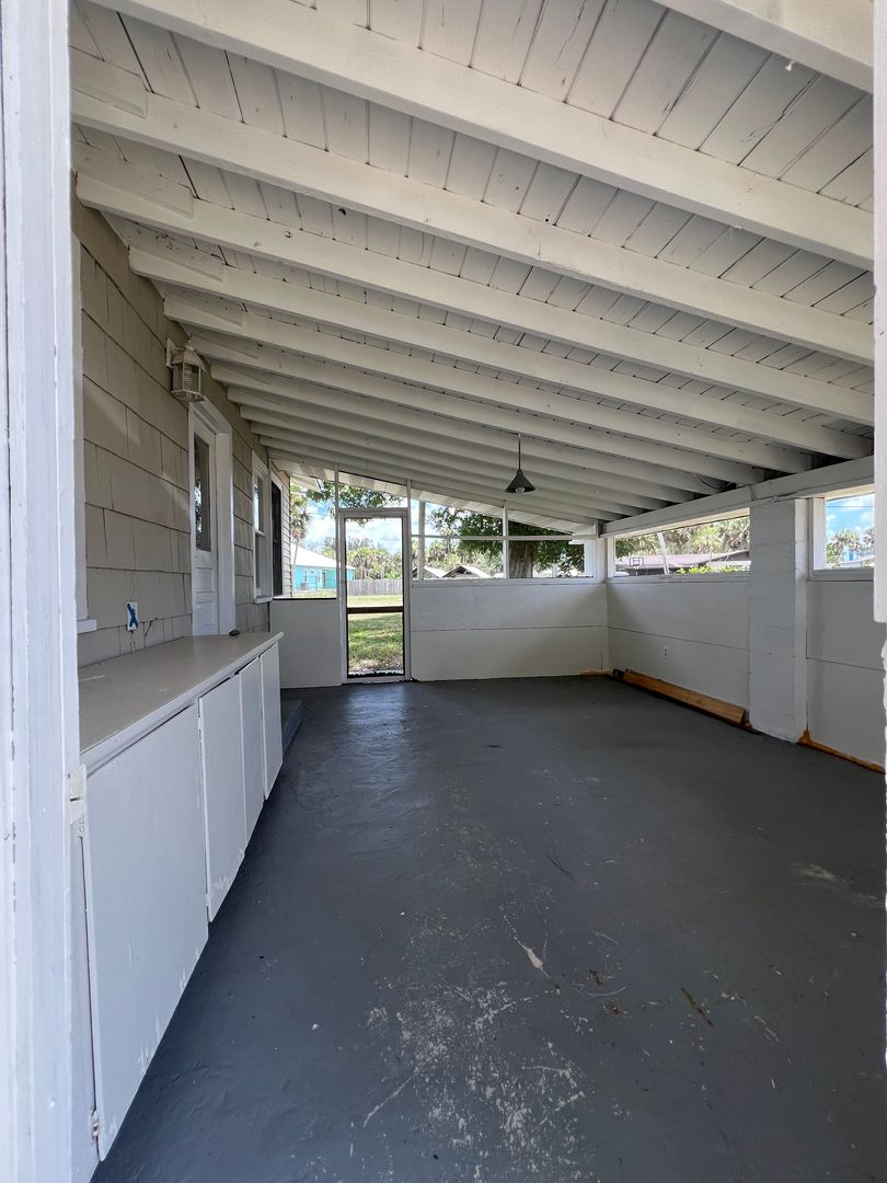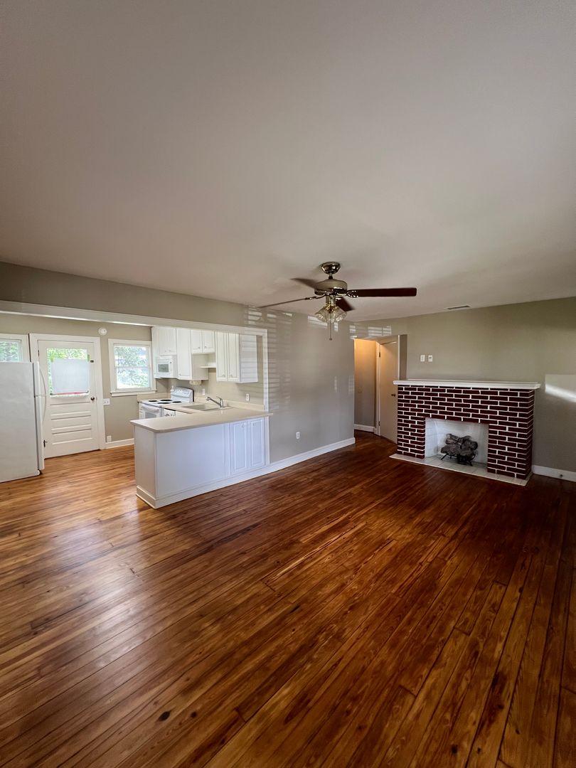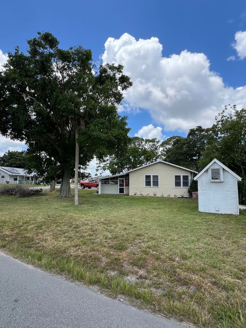 Country lot with 2/1 bungalow. Gas fireplace, screened patio, wood floors.