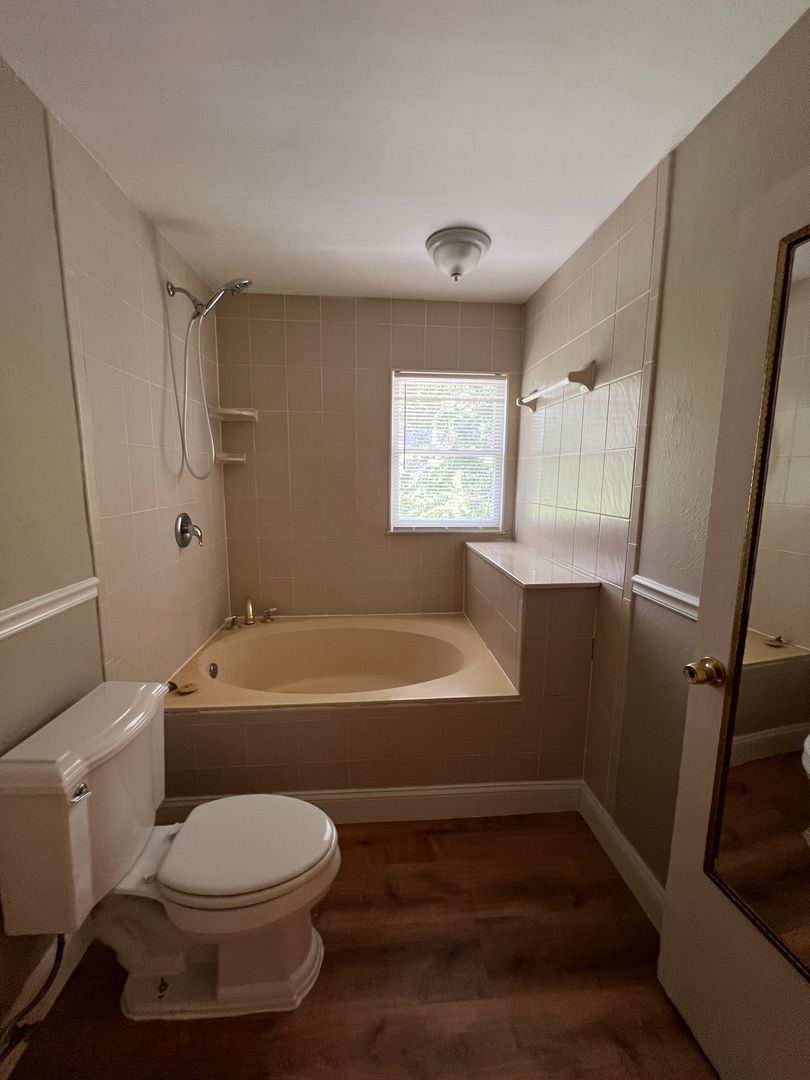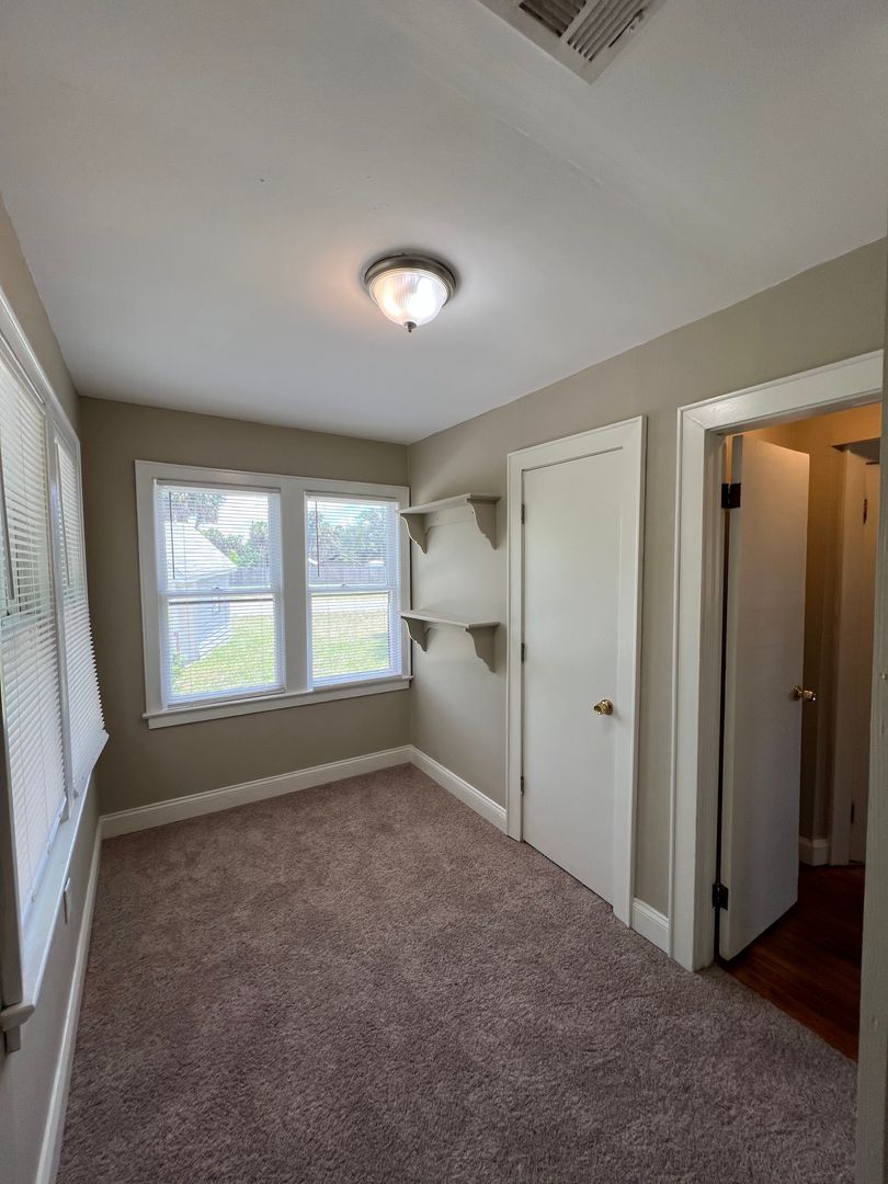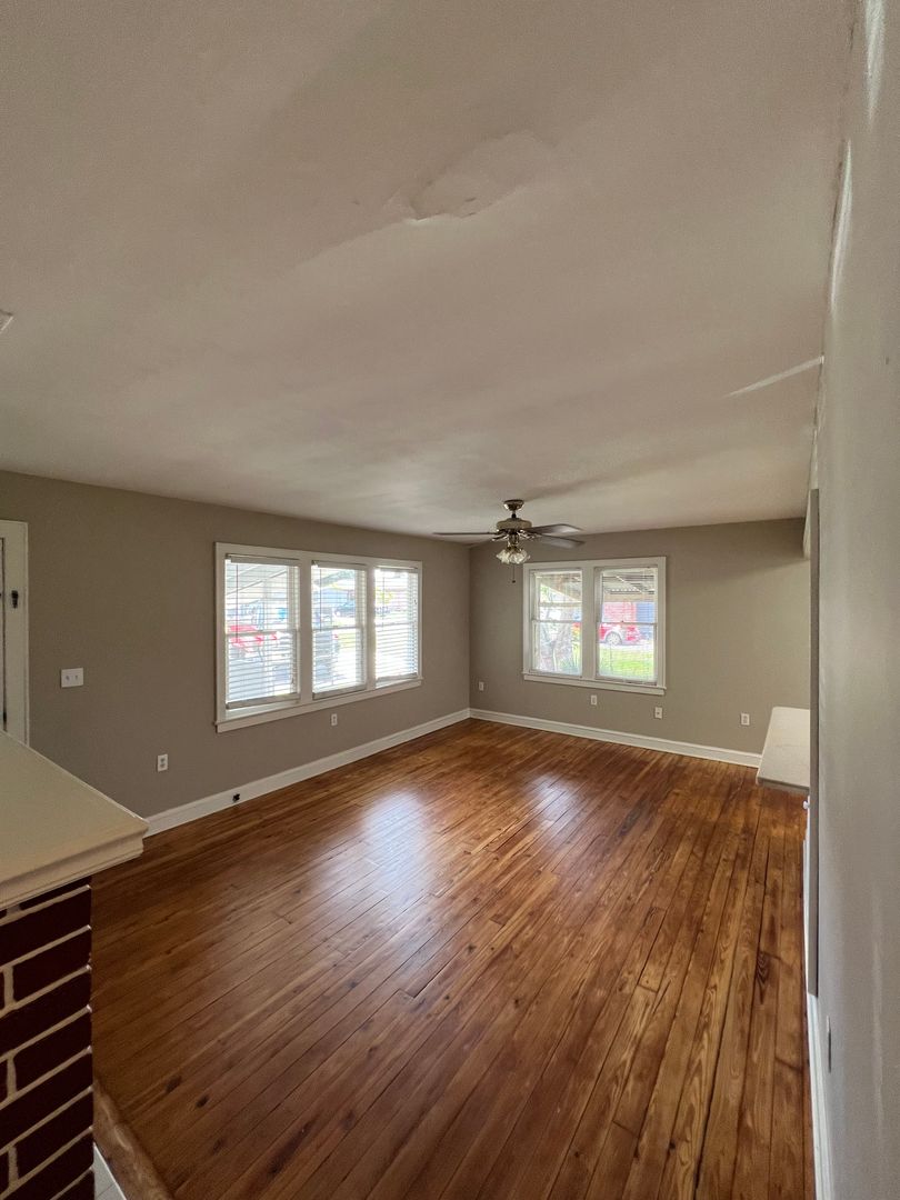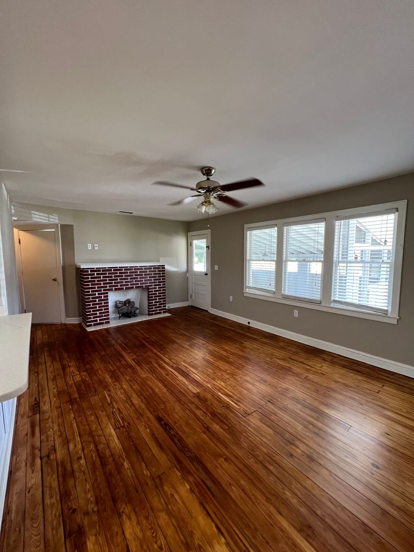 Country lot with 2/1 bungalow. Gas fireplace, screened patio, wood floors.
